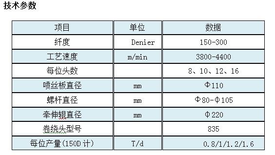 設(shè)備用于生產(chǎn)滌綸FDY全牽伸絲,該絲主要用于服裝、床上用品、裝飾用品、產(chǎn)業(yè)用的土工布、過濾布等。