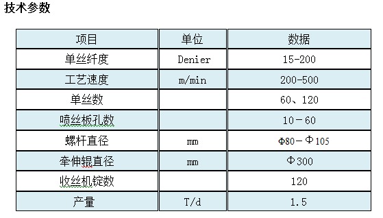 1.用加強(qiáng)型螺桿 2.單絲機(jī)產(chǎn)品紡絲箱中熔體停留時(shí)間短 3.何用大板面噴絲板、大流量高壓紡絲泵 4.單絲機(jī)獨(dú)特水浴冷卻設(shè)備使絲束獲得取向度低,無(wú)結(jié)晶結(jié)構(gòu)、拉伸性能良好的初生絲。 5.單絲機(jī)高效的接收機(jī),降低設(shè)備投資成本。